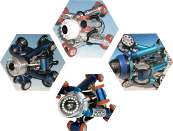 这是一种新型的管道爬行器,用于管道内部的视频检查。尤其是可用于那些管道有拐弯的部分,垂直上下的部分,以及有管道分支的部分。这种新型爬行器具有十分优秀的紧凑性和柔韧度,他可以自由的穿行在水平、垂直和有90°弯曲的管道。