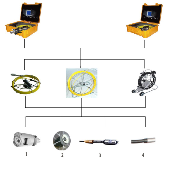 注: 镜头1:镜头直径为51mm,可轴向360°水平180°旋转; 镜头2:镜头直径为40mm,带图像自动水平功能; 镜头3、4:直径分别为23mm、12mm的镜头,也可配6mm的镜头。